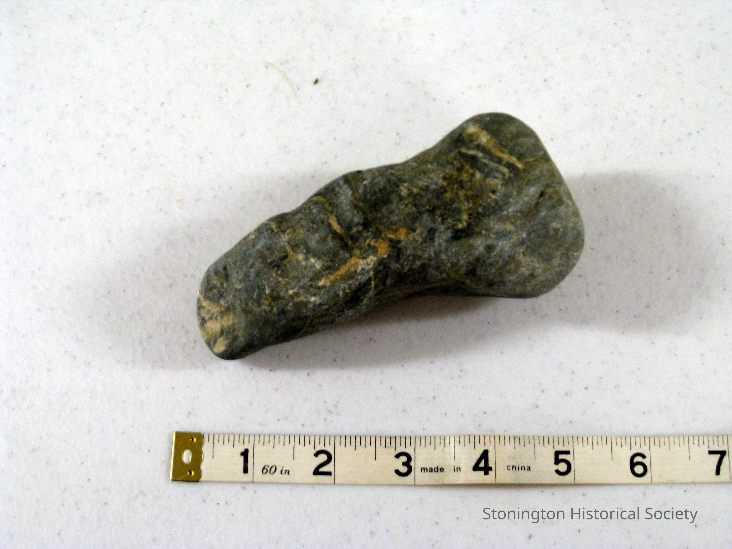 Stone used for pounding acorns; 5: long, 7 3/4" circ. bottom, gray graniteCollection