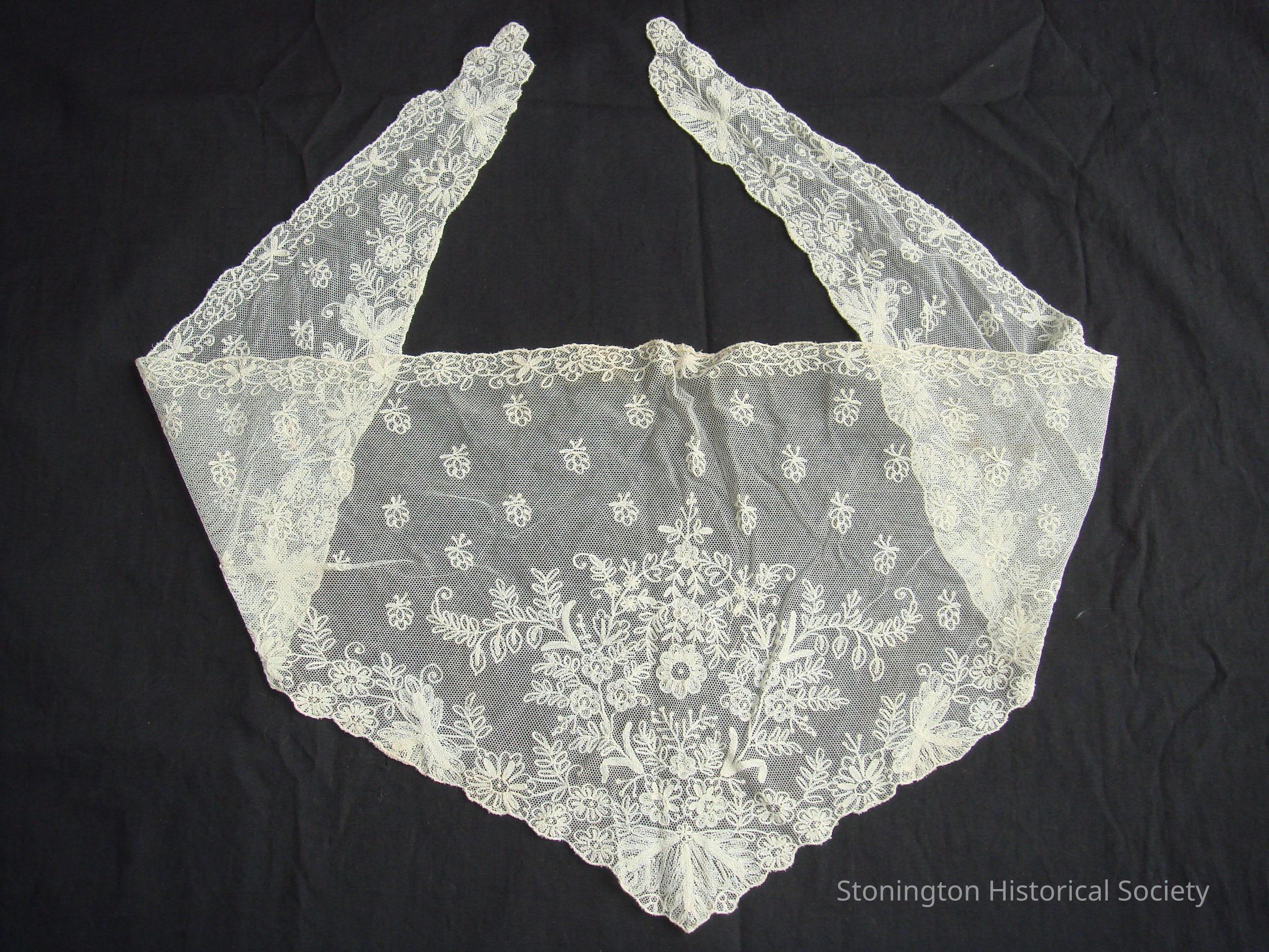 Triangular Lace Collar Machine made net ground Hand embroidered chainstitich needlework on ground delicate floral pattern