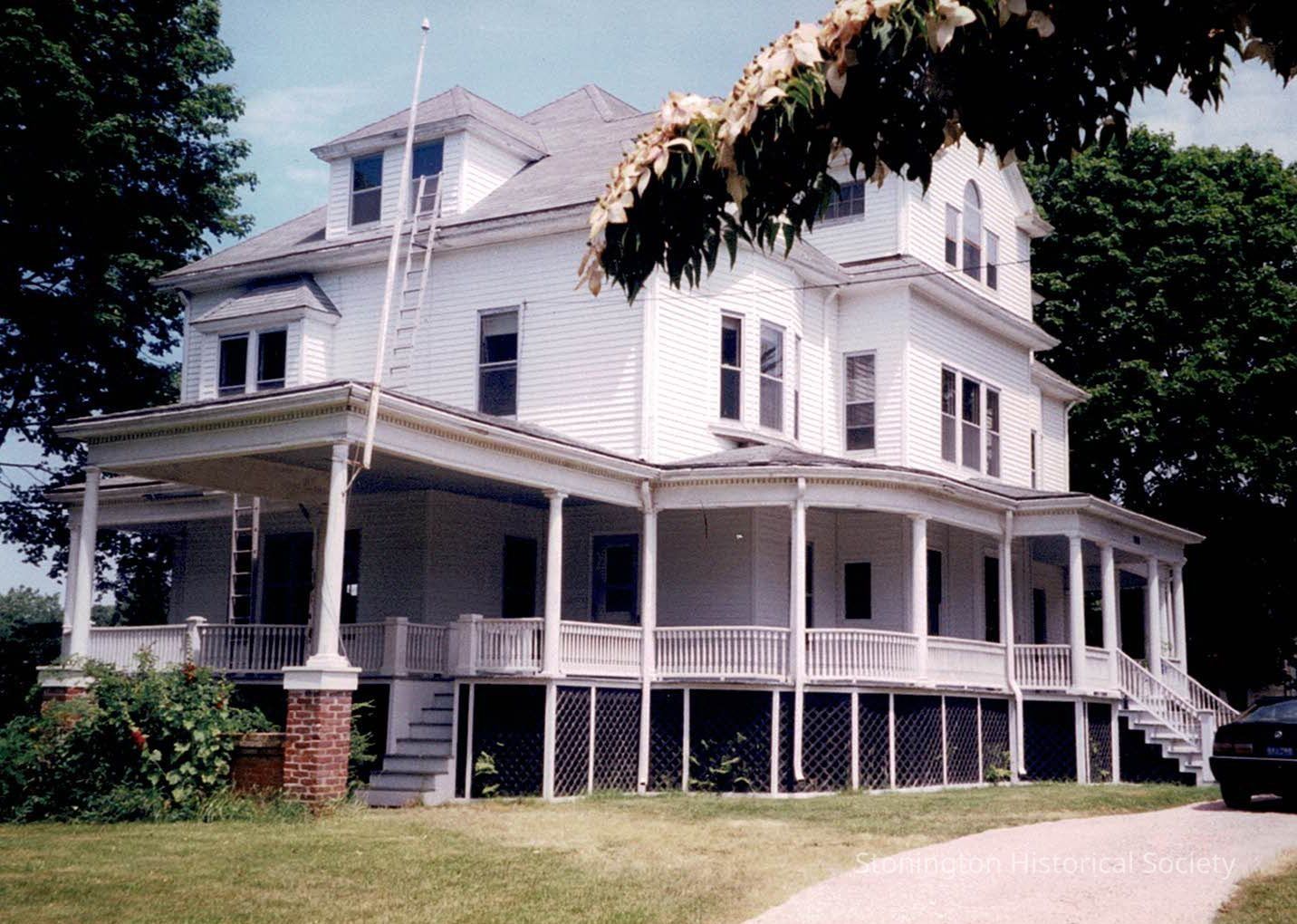 Photograph taken in July of 2000 of the exterior of Bella Vista, 166 Elm Street, by Rae and Steven Singer after purchasing the property. The home was originally built by Edward E. Bradley around 1901 and features many original architectural and ornamental details. These photographs were taken to document the state of the house before it underwent cosmetic and some interior structural renovations by the Singers.Collection