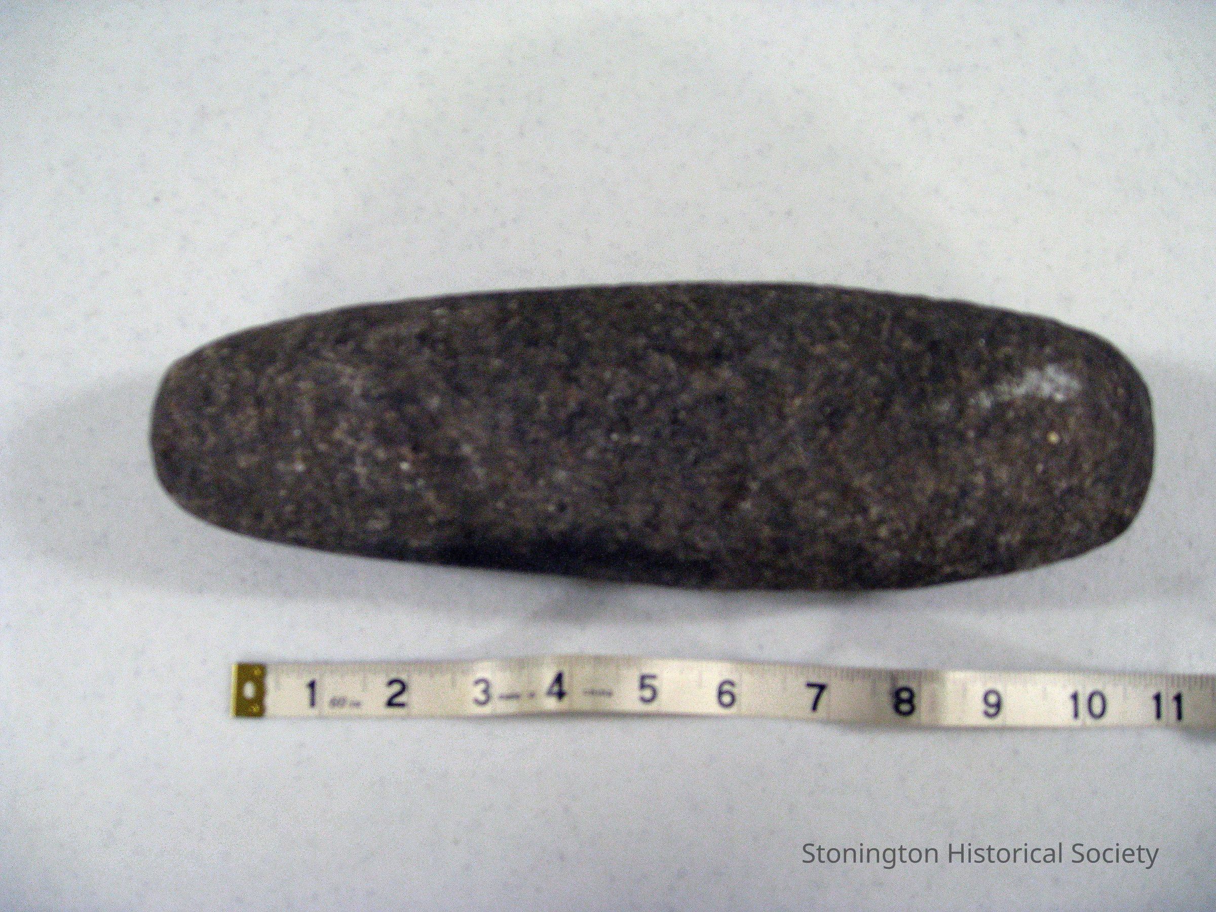 Pestle used by Indians to grind corn into meal (Indians hollowed out tree stump for corn).Collection