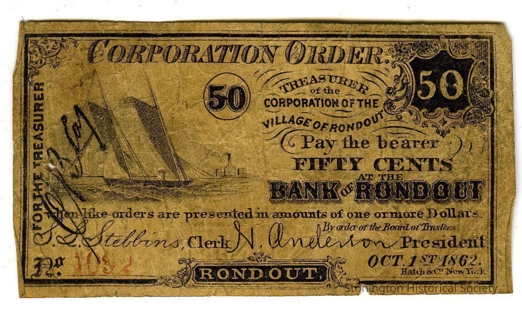 Fifty Cents - Bank of Rondout Corporation Order No. 1092 Dated Oct. 1, 1862 per Dave Barbone, Stonington CT, condition is Fine a/o 5/30/2012
