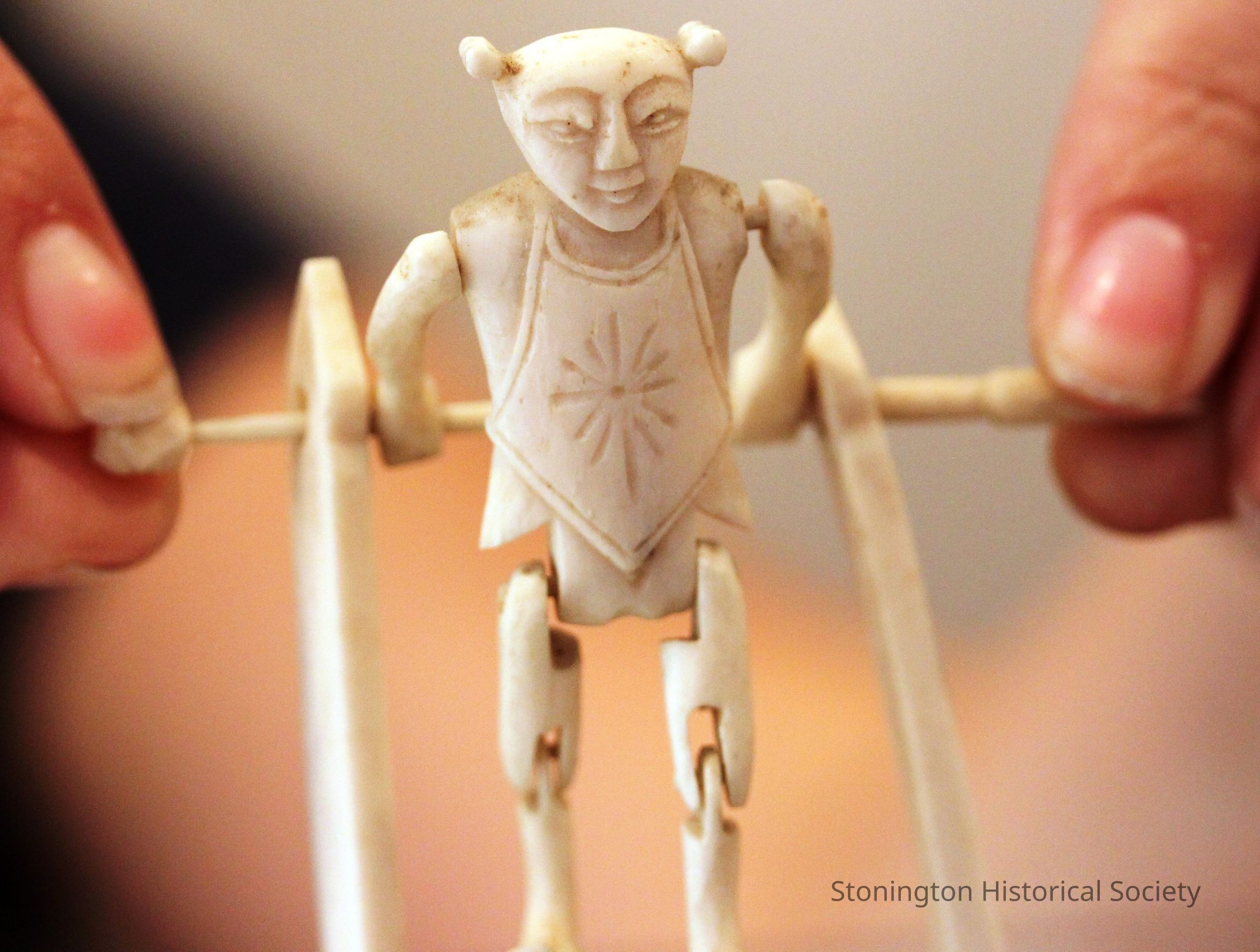 Chinese carved ivory figurine, an acrobat or monkey on a horizontal bar