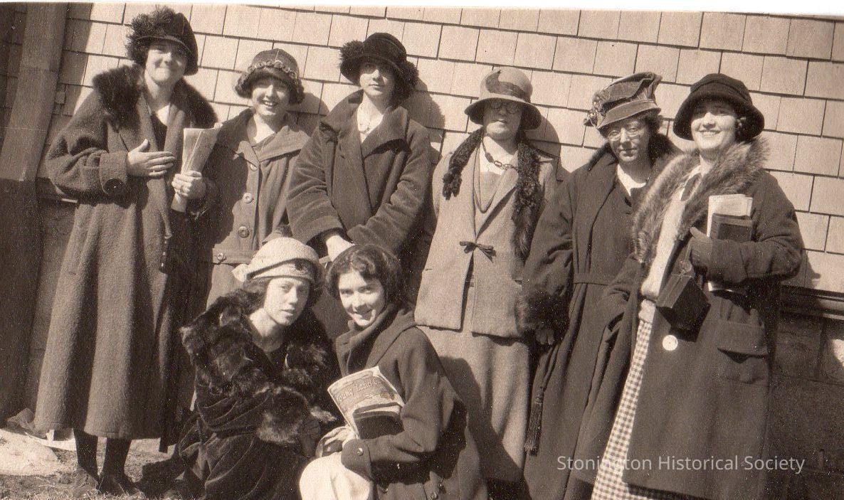 Photograph from the album, "The photographic life, moods and friends of Dorothea Hewett Gould, 1907-1942" (2002.0613.018). Girl's Sunday School Class for the First Baptist Church, Stonington, 1923.