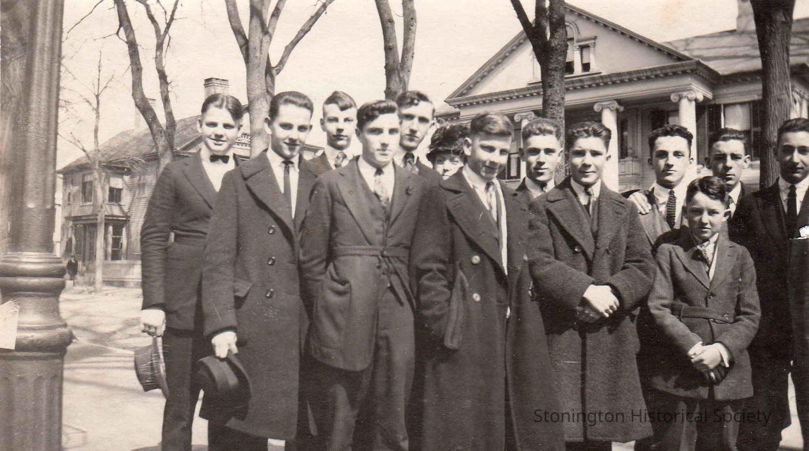 Photograph from the album, "The photographic life, moods and friends of Dorothea Hewett Gould, 1907-1942" (2002.0613.018). Boy's Sunday School Class of the First Baptist Church, Stonington, 1922.