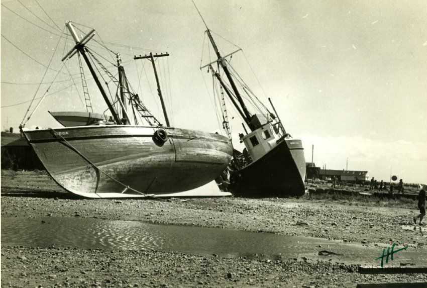 Fishing boats on shore