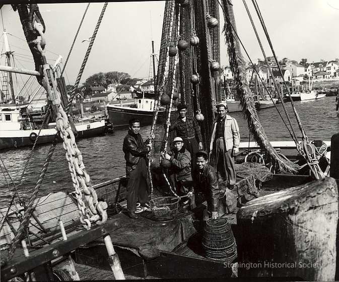 Fishing crew on board at dock, Stonington CTEntry/Object ID