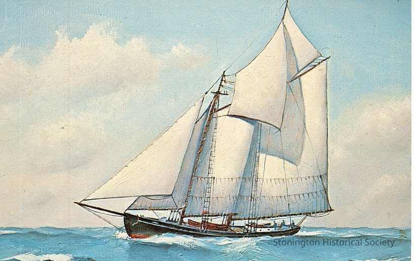 Fishing Schooner. Painting by Ellery Thompson of Mystic