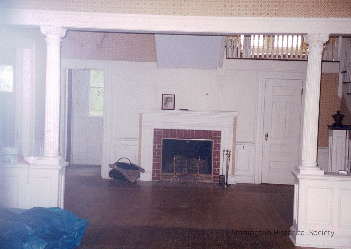 Photograph taken in July of 2000 of the entryway to Bella Vista, 166 Elm Street, by Rae and Steven Singer after purchasing the property. The home was originally built by Edward E. Bradley around 1901 and features many original architectural and ornamental details. These photographs were taken to document the state of the house before it underwent cosmetic and some structural renovations by the Singers.Collection
