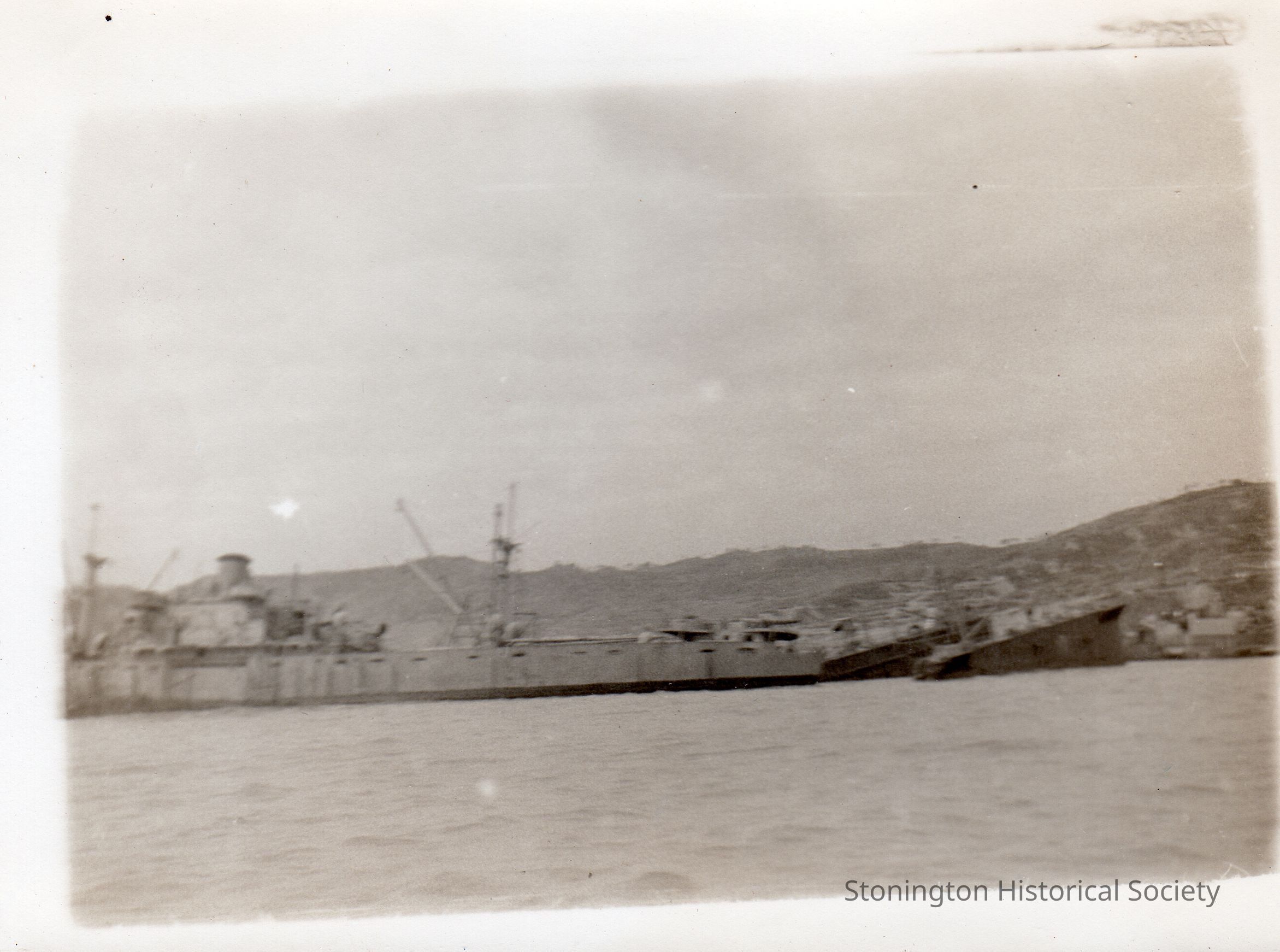 Black and white photo of U.S. battlecruisers in the Pacific, from the photo collection of Fred Weeks. Weeks was born in Stonington on March 16, 1922 and served with the U.S. Navy in the Pacific theater during WWII.