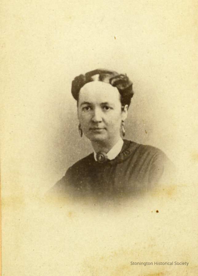 A portrait photograph of Georgia Palmer Babcock Williams, wife of Charles Phelps Williams, taken by A.E. Scholfield. This portrait dates from approximately the 1860s, due to fashion and hair style.Collection