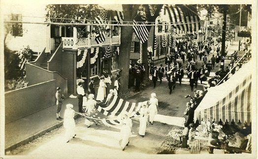 Girls carrying American Flag, going down Water Street