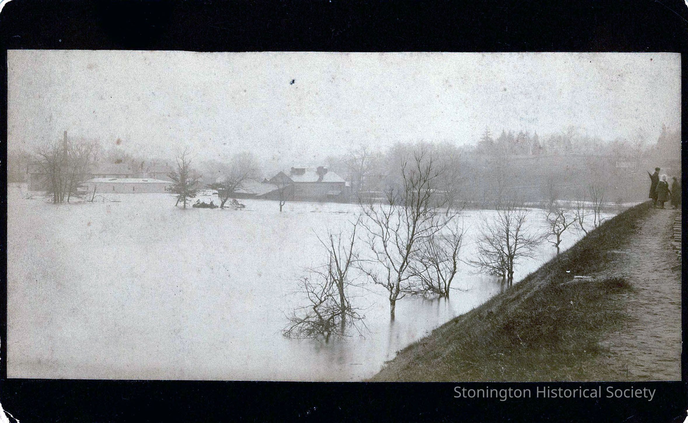 The Great Flood of February, 1886. Images shows the Gas House at Ross' Mill in Westerly, RI, taken from the railroad looking west.Made/Created