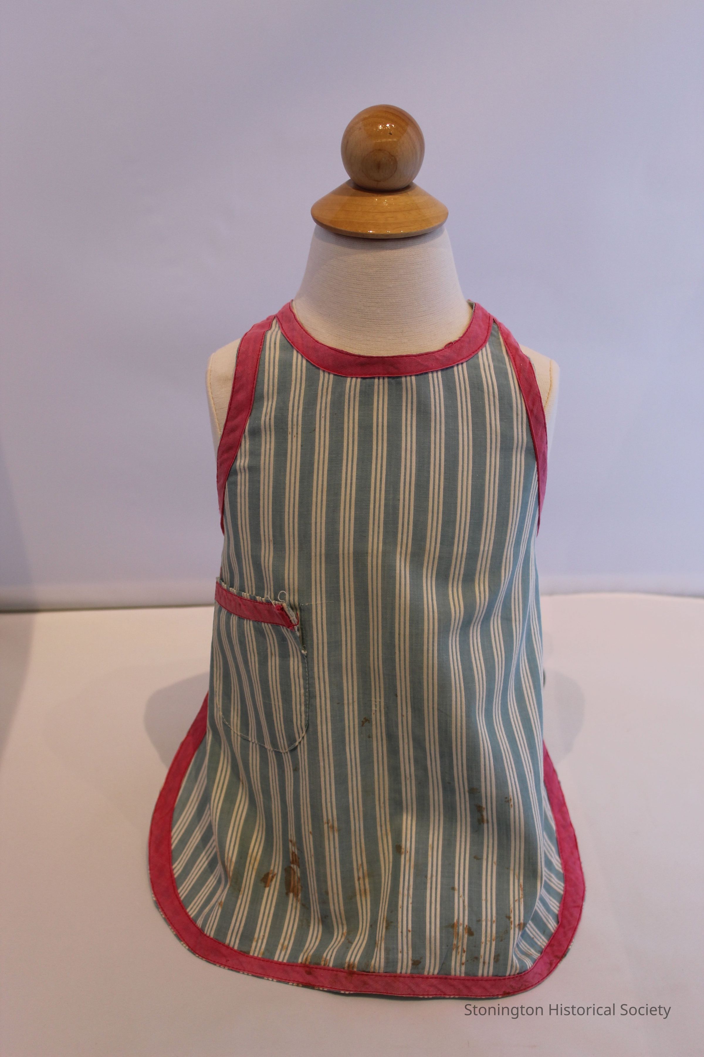 Green and white striped child's bib apronEntry/Object ID