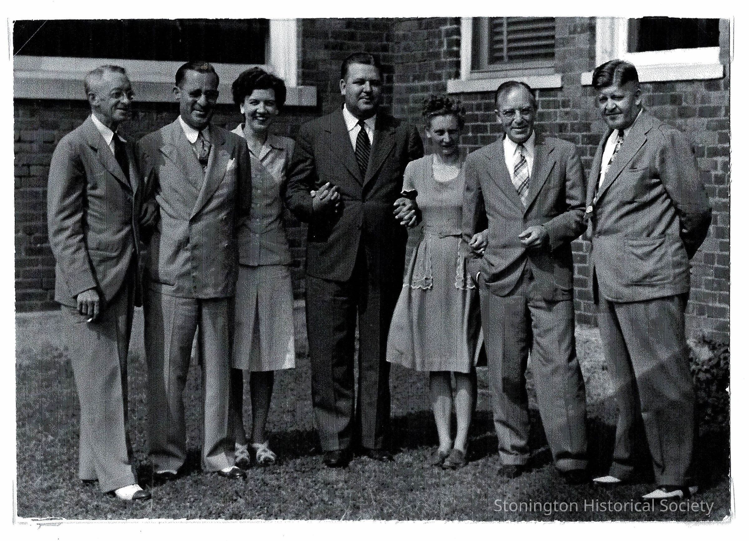 Identified via Facebook in December 2025 - left to right: Franklin Hoadley, John Breen, Ethel Sidebottem, Bill Paulhamous, unknown woman, Christy Ledwith and Dick Lenihan.Collection
