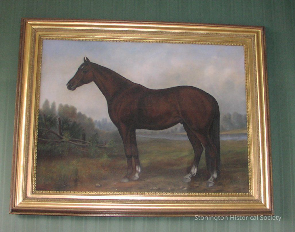 Framed pastel portrait under glass of trotter champion, Happy Thought, owned by Theodore D. Palmer, II (son of William Lord Palmer)