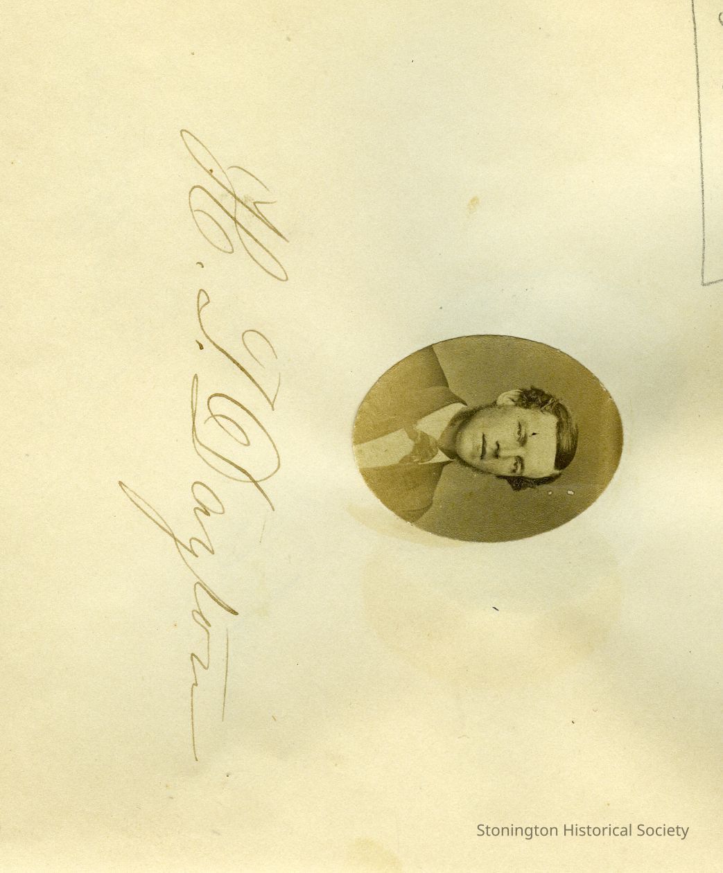 Small oval portrait of H[arvey] T. Dayton in "Photographs and Autographs" book