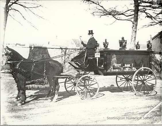 Horse drawn hearse outside Robinson burial ground, Broad Street, borough, Stonington CTEntry/Object ID