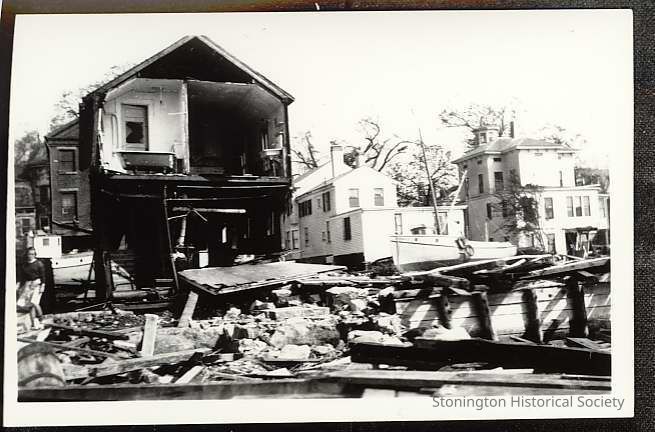 Hurricane destruction on West Church Street. 98 Water Street is at far right