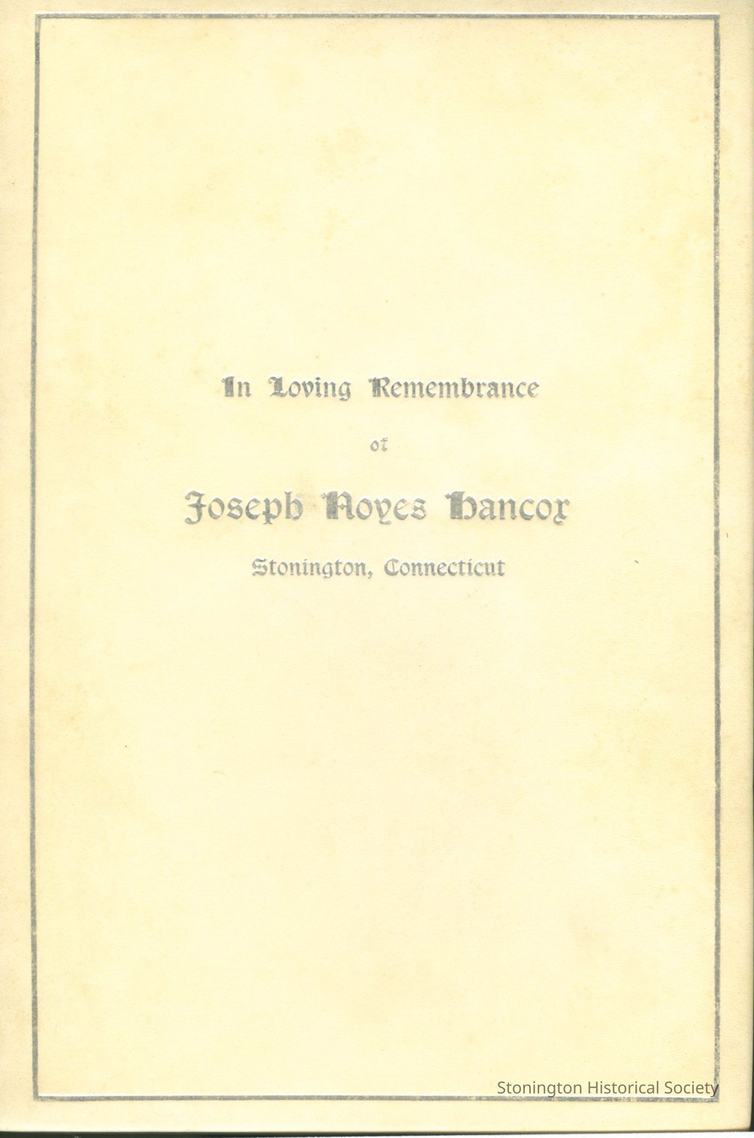 In Loving Remembrance of Joseph Noyes Hancox Stonington, ConnecticutEntry/Object ID