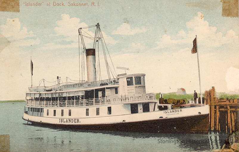 Postcard showing the "Islander" at dock at Sakonnet RI