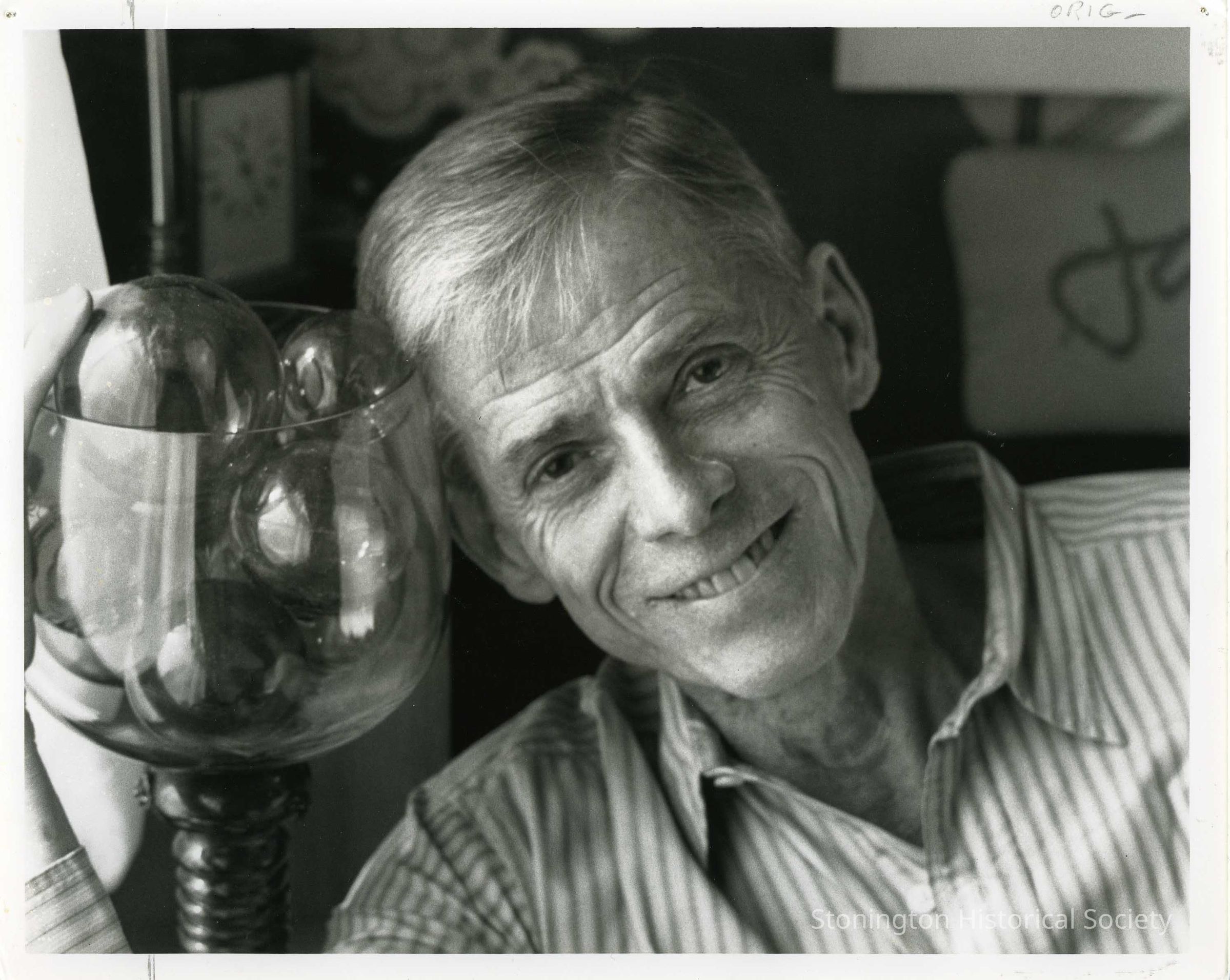 James Merrill with large bowl with Christmas balls