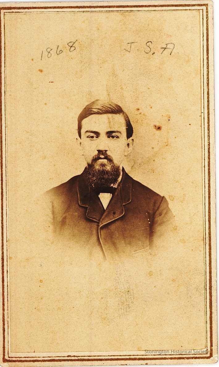 Head and shoulders photo of Jerome S. Anderson "1868 JSA" in pencil on photo gummed label "Stonington Publishing Company... since 1869"