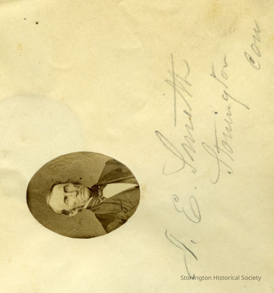 Small oval portrait of Joseph E. Smith of Stonington in Photographs and Autographs book