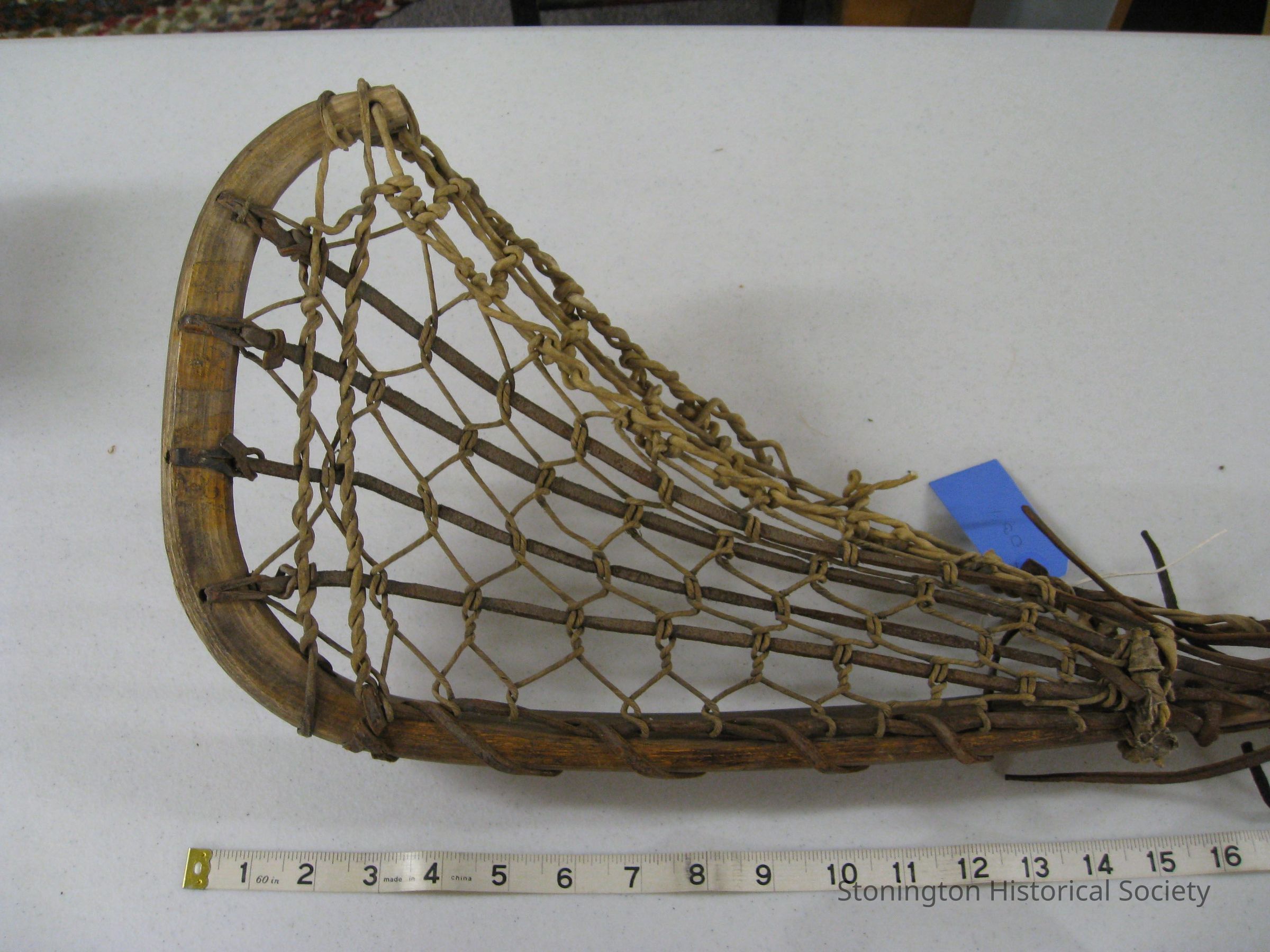 Lacrosse stick used in games by Native Americans; played on beaches.