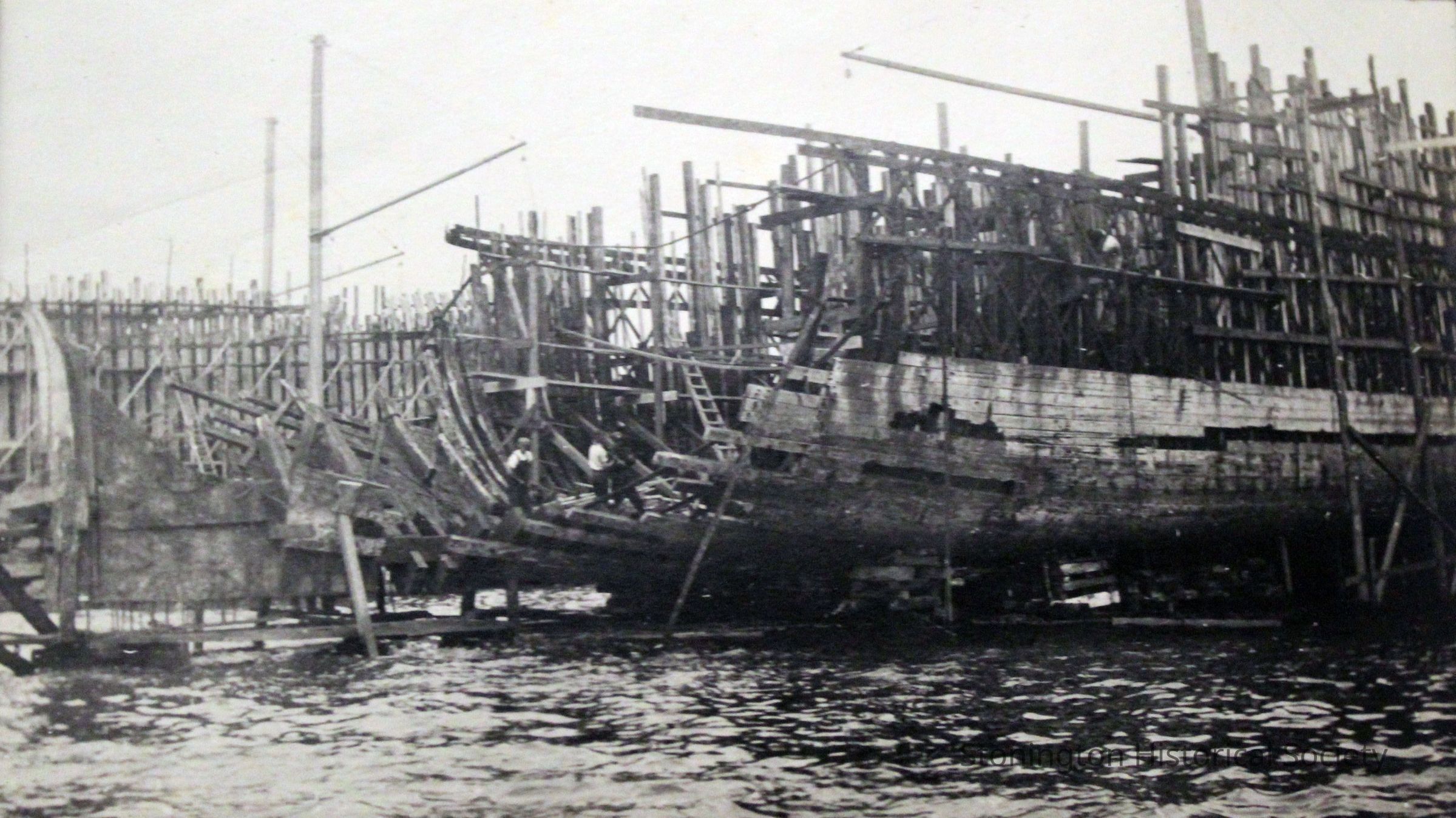 Rebuilding of the SS Lansing as seen from Stonington harbor. The Lansing steamship was rebuilt by the Ship Construction and Trading Company, Inc. for the Nafra Company of New York.Made/Created