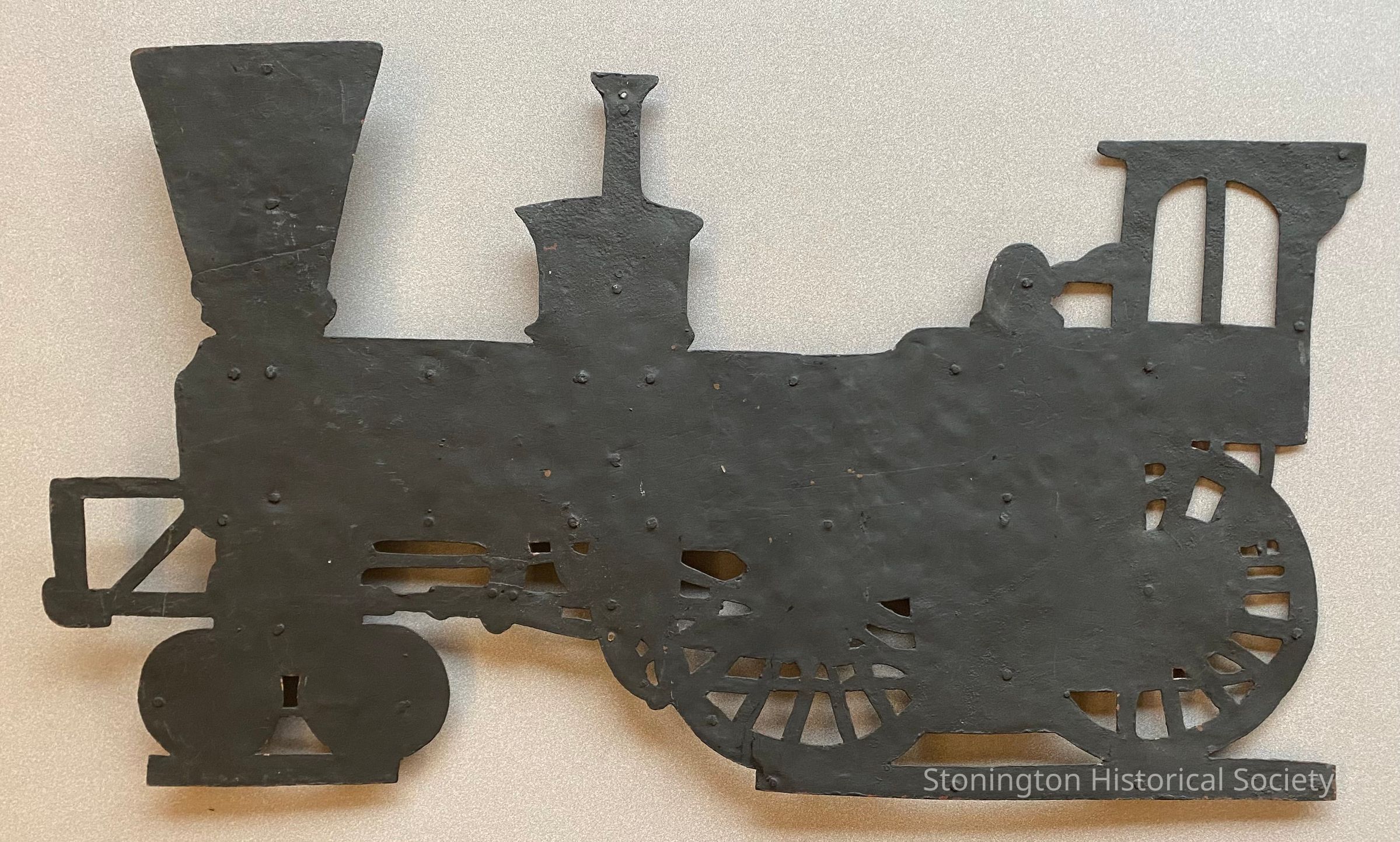 Metal silhouette of a train locomotive, 21.25" x 37"