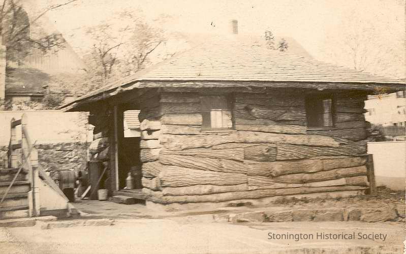 Picture of log cabin behind pharmacy on High Street used for storage per note included with postcard