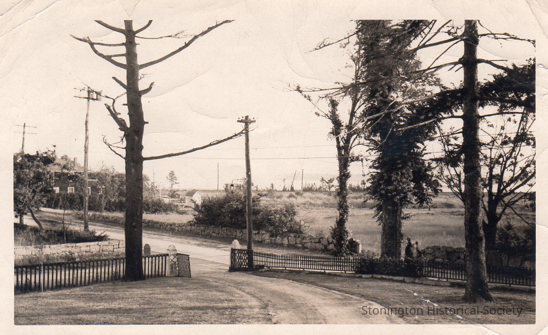 Collection of 12 snapshots in album labeled "Loper Family Photographs." Individuals in photographs are unidentified, but collection includes a view looking out the front gate of the Capt. Nathaniel Palmer House, south onto North Water Street.