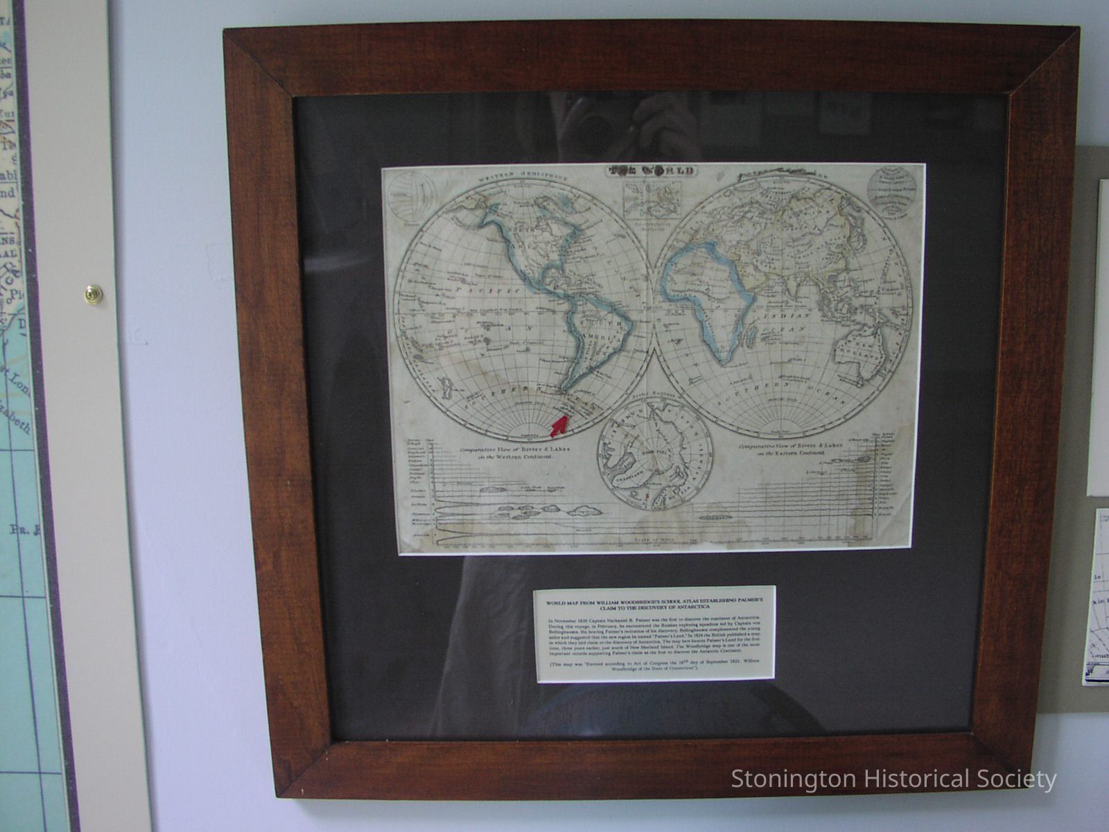 Framed map, a page from the William Woodbridge's School Atlas, 1821, showing "Palmer's Land".