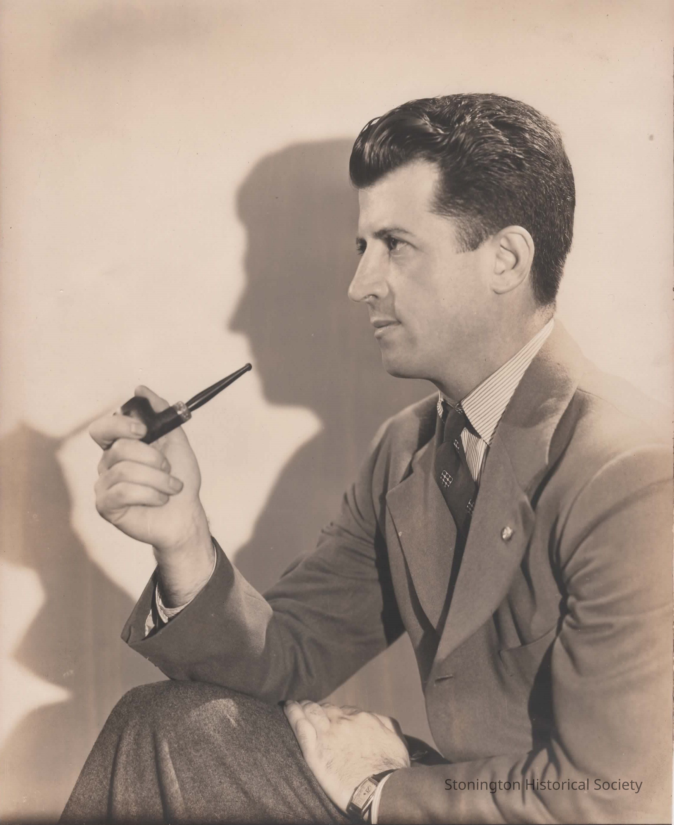 Collection of 8 black and white adn 2 color portrait photographs (and passport photographs) of Maurice La Grua through the years.