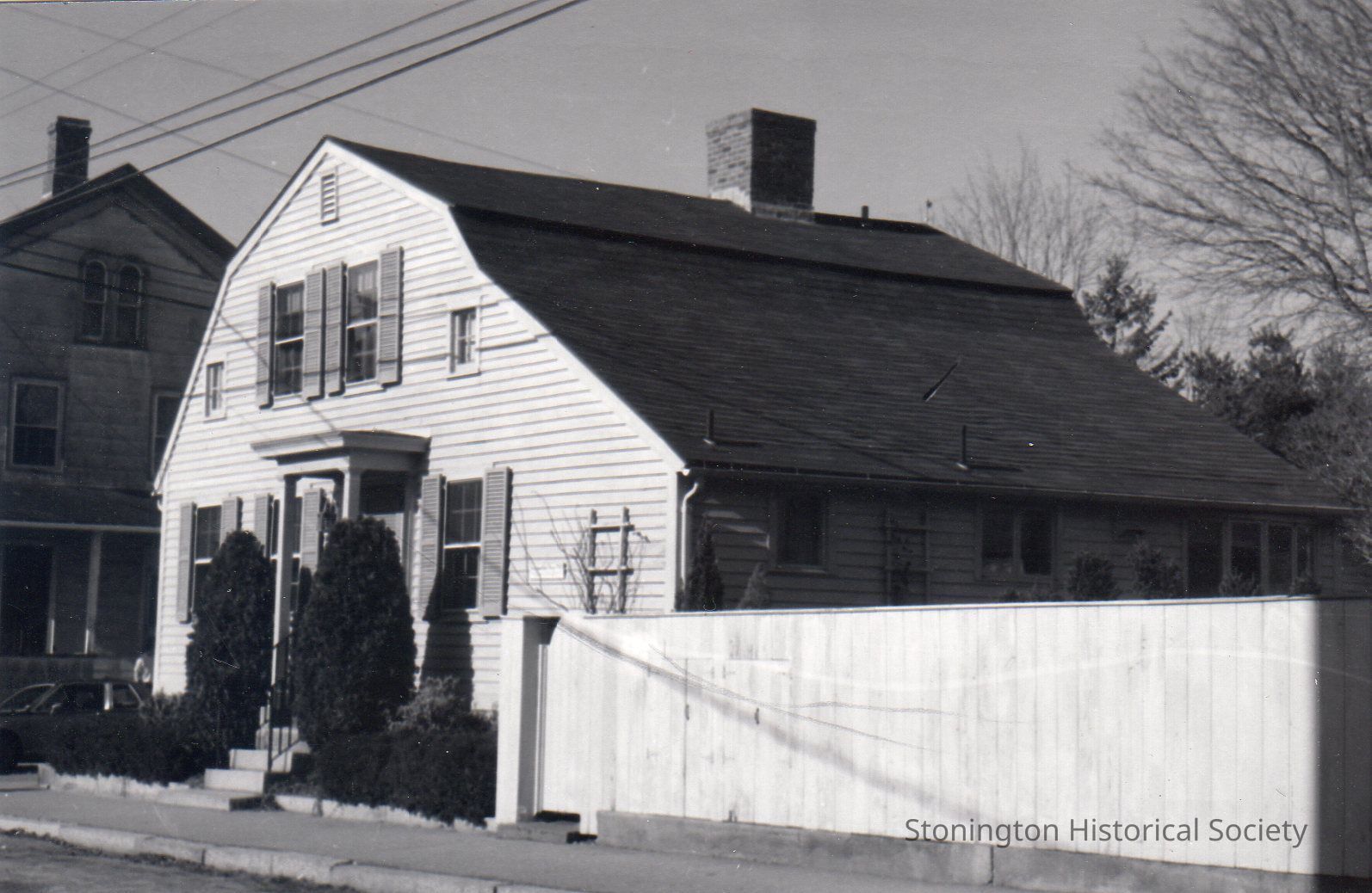Black and white photograph postcard, view of the Capt. Jessie Beebe House (built 1765) at 12 High Street. Photograph by Maurice LaGrua.Collection
