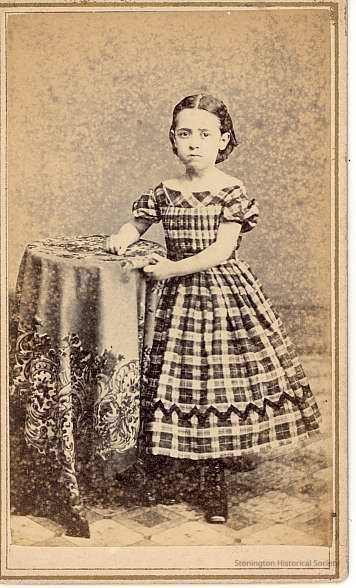 Portrait of Mrs. Brody's daughter standing next to table.
