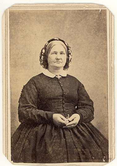 3/4 seated portrait of Mrs. Samuel Stanton, older woman in black dress Photo by Scholfield, Westerly