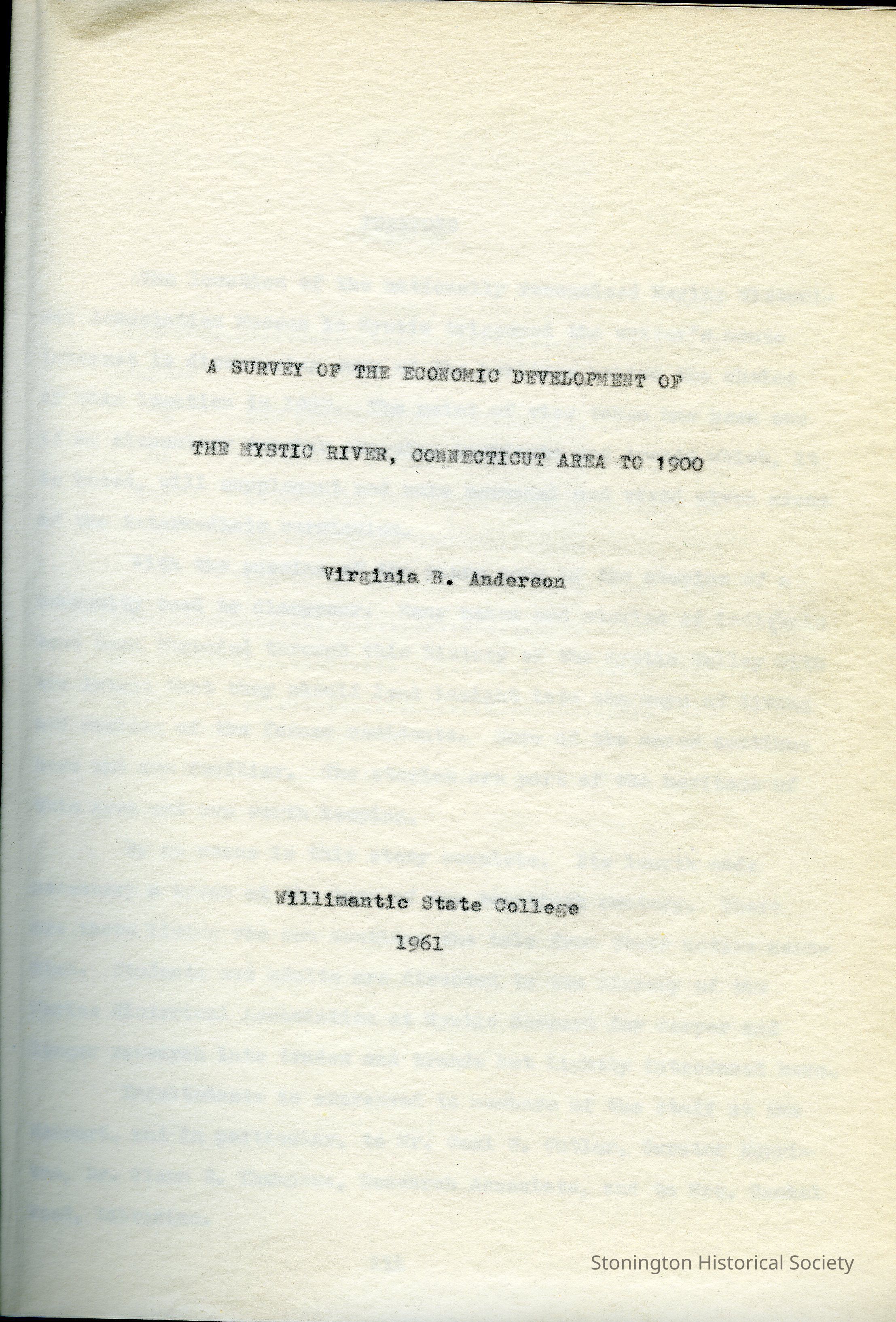 Mystic: A Survey of the Economic Development of the Mystic River, Connecticut Area to 1900Entry/Object ID