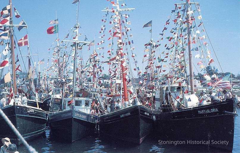 "Updated" picture of the fishing fleet in Stonington decorated for the Blessing.