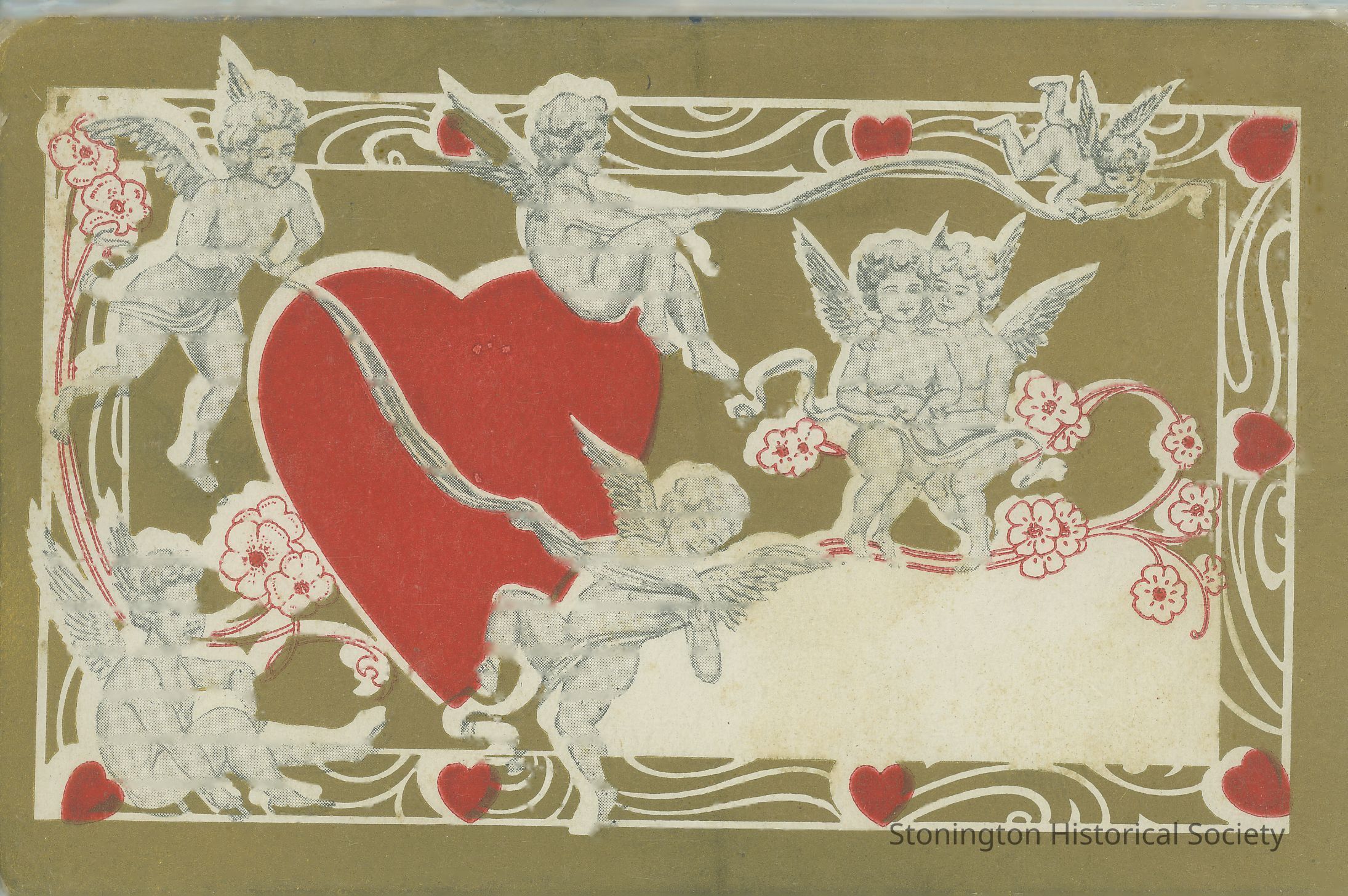 Six cherubs surrounding heart with two of them to one side. 9739 stamped on back