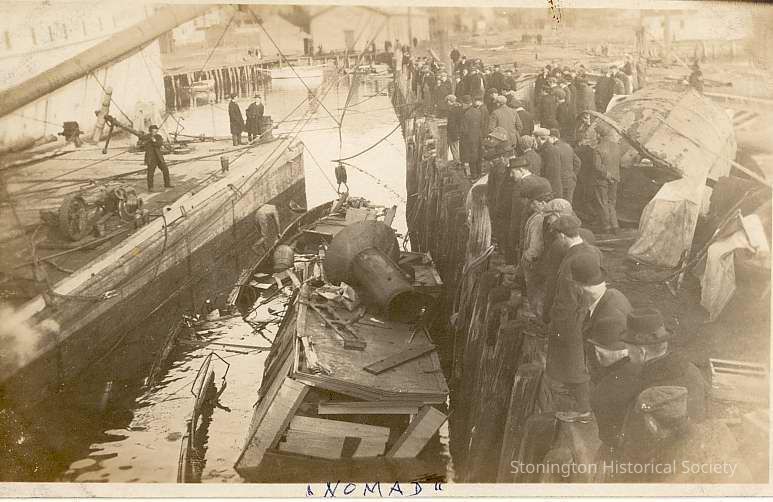 Nomad wreck at dock, Stonington CTEntry/Object ID