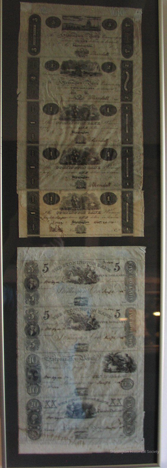 bank notes, Stonington, in sheets, framed (3)