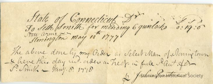 Paper relating to an invoice of Seth Smith "for mending 6 gunlocks L0.19.6 "