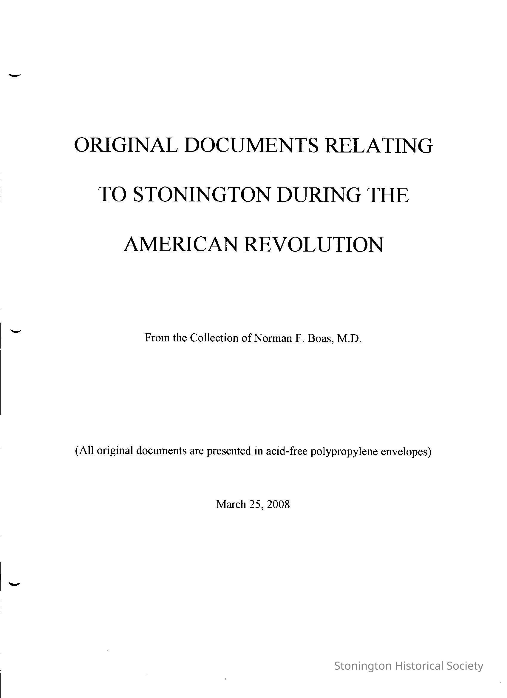 Original Documents Relating to Stonington During the American RevolutionEntry/Object ID