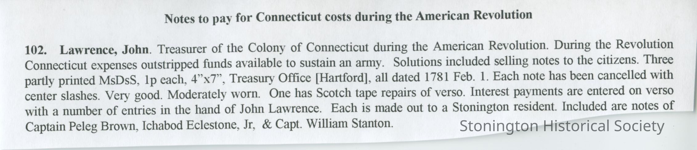Original Documents Relating to Stonington During the American RevolutionEntry/Object ID