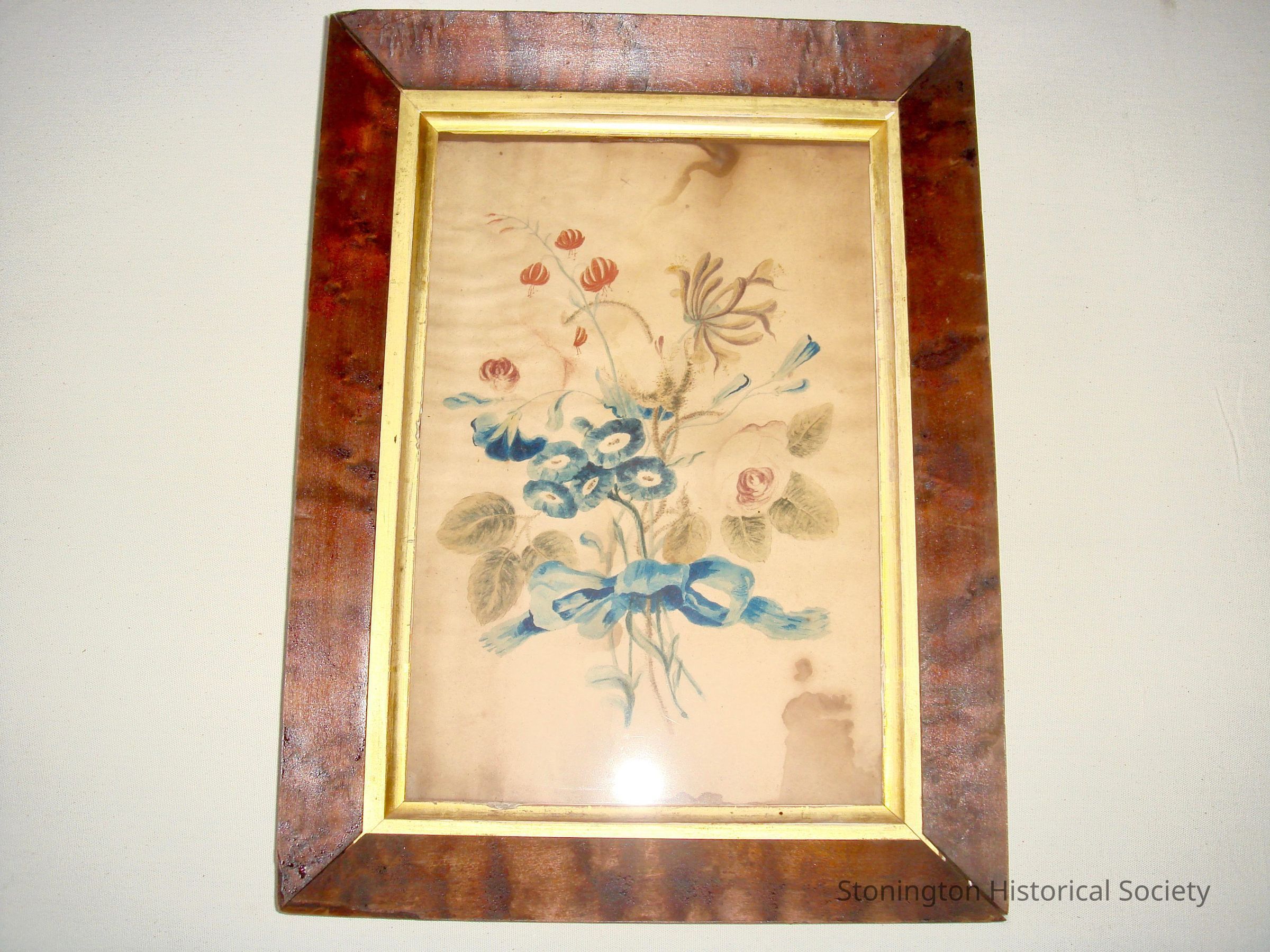 Pith Painting of watercolor bouquet tied with a blue bow