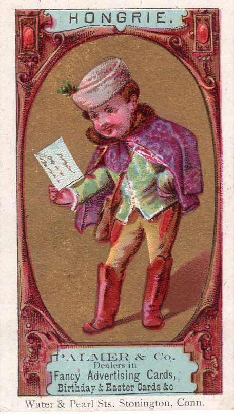 Trade Card, "Palmer & Co., Dealers in Fancy Advertising Cards, Birthday Cards, Easter Cards &c, Water & Pearl Sts., Stonington, Conn." Palmer & Co. operated at 151 Water Street in Stonington Borough.