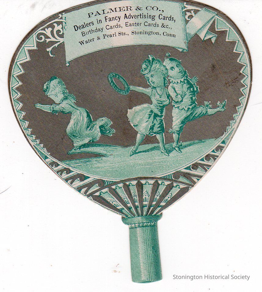 Trade Card, "Palmer & Co., Dealers in Fancy Advertising Cards, Birthday Cards, Easter Cards &c, Water & Pearl Sts., Stonington, Conn." Palmer & Co. operated at 151 Water Street in Stonington Borough.