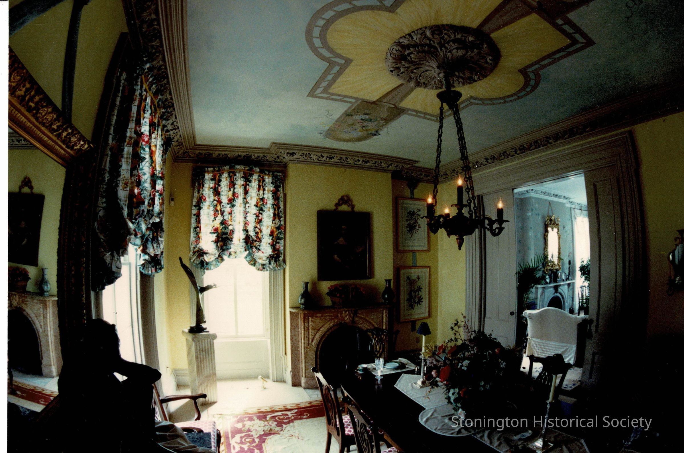 View of the Captain N.B. Palmer House dining room as it was decorated for the Designer's Show House in 1989. This room, "La Salle de Fleurs" was designed by Betsey Cotter Interiors of Madison, CT.Collection