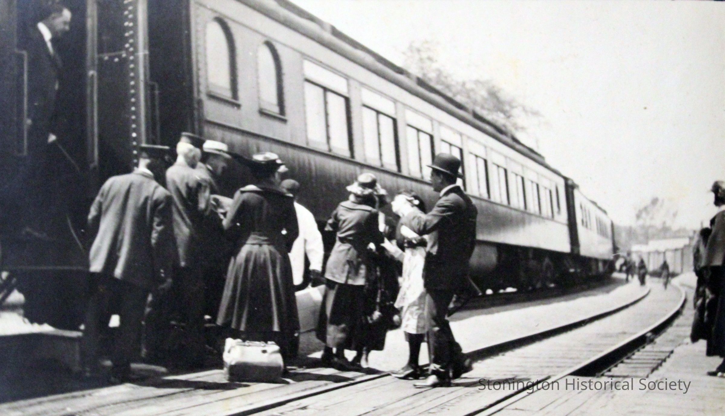Passengers disembarking the train at Stonington station, 1919Entry/Object ID